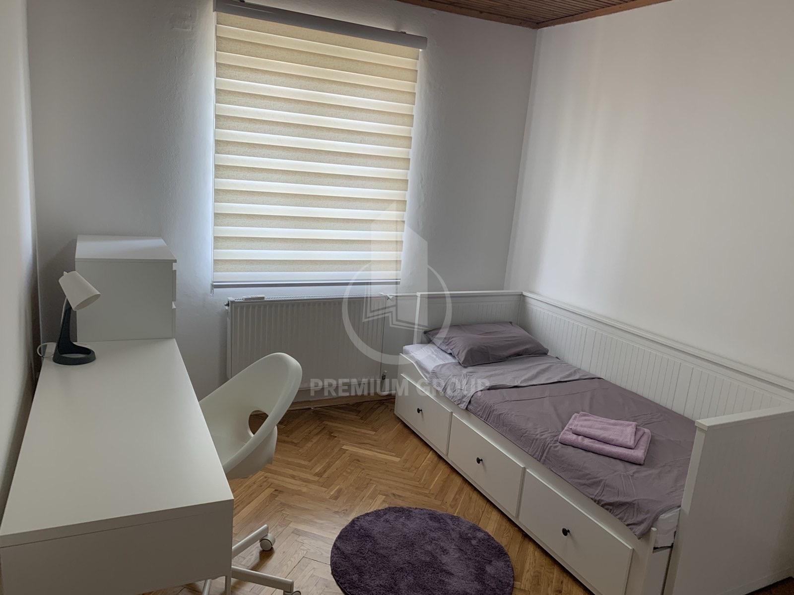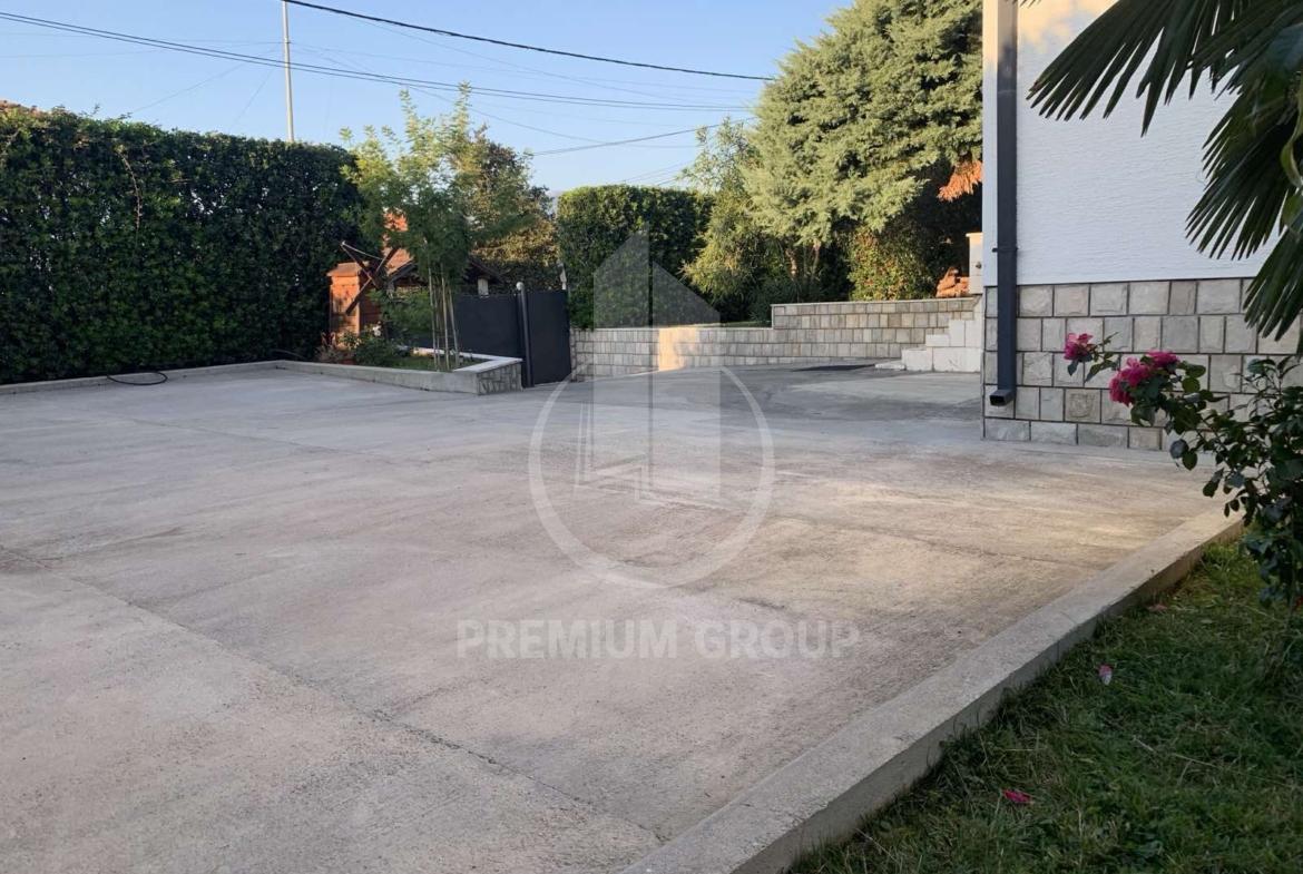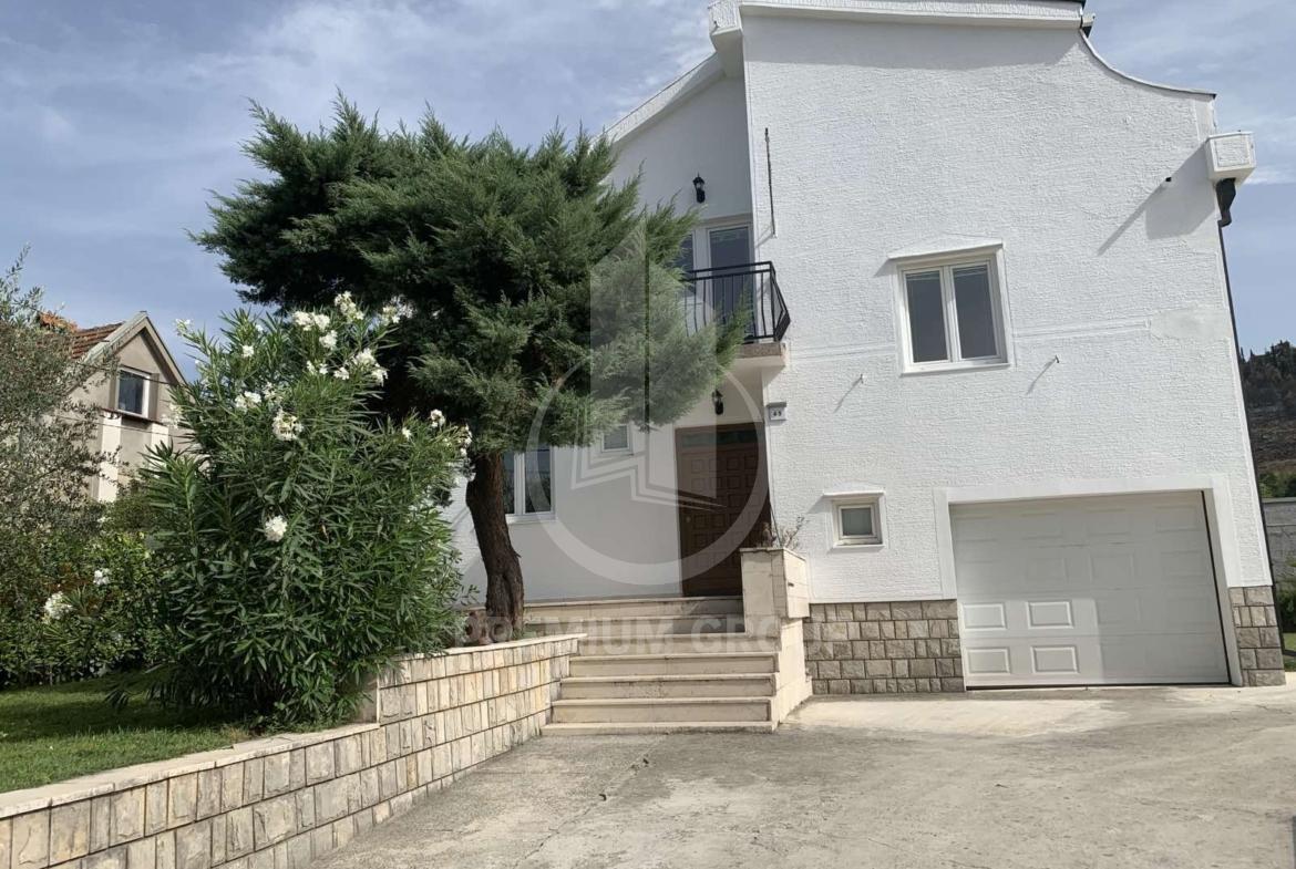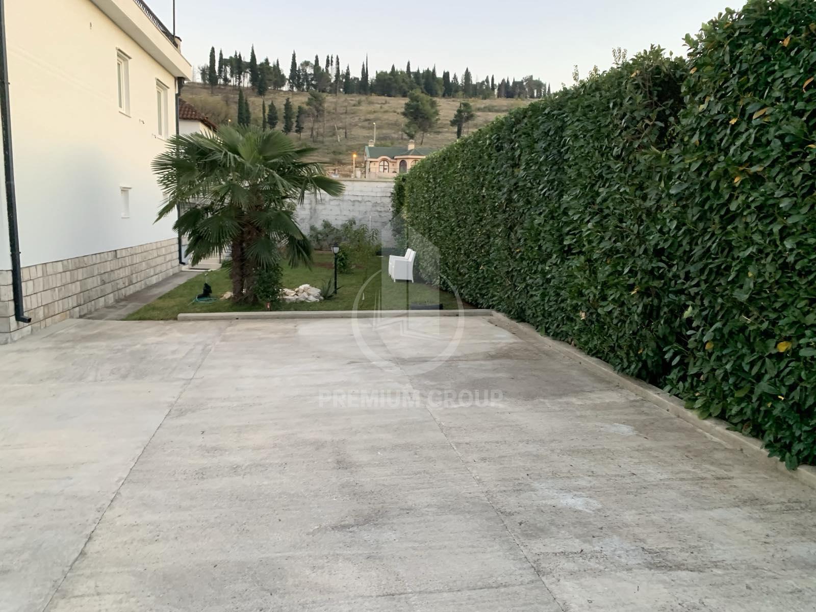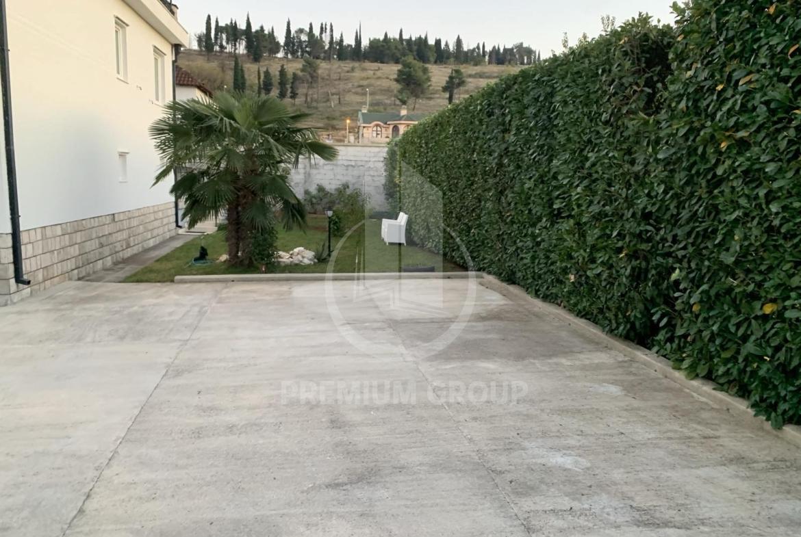 Kuća za izdavanje na dobroj lokaciji u Zagoriču kvadrature 250m2 na 700m2 placa.Kuća se nalazi na odličnoj lokaciji u neposrednoj blizini park šume Gorica na 1.5km od centra. Kuća je idealno orijentisana i gleda na ulicu, parcela je u obliku kocke, a sama kuća idealna je za Ambasade jer je potpuno odvojena od ostalih kuća i okružena visokom betonskom i zivom ogradom. U samom dvorištu ima 10 parking mjesta i garažu u koju stane veći automobil. Širokim asfaltnim putem je povezana sa centrom grada. Dvoriste je kultivisano,uredjena basta Ogradjena sa 4 strane visokom betonskom ogradom i živom ogradom,visine 3 m tako da kuća ima veliku privatnost .Kuća ima videointerfon, kapiju i garazu na daljinsko otvaranje, klime i centralno grijanje. Kuća je radjena veoma kvalitetno iz nivoa. Prvi nivo hodnik, gostinski toalet, velika dnevna soba (sa velikom terasom na dvije strane kuće) sa trpezarijom i velikom kuhinjom, u prizemlju garaža, iz koje se moze ući u kuću sa pomoćnom prostorijom drugi nivo dvije sobe (sa ugradnim plakarima),ostava i luks kupatilo, treci nivo dvije velike sobe(sa ugradnim plakarima) jedna ima terasu a druga pomoćnu sobu, na istom nivou je veliko luks kupatilo, na četvrtom nivou su dvije sobe koje se mogu preurediti u konferencijsku salu sa velikom terasom koja gleda na park šumu Gorica.