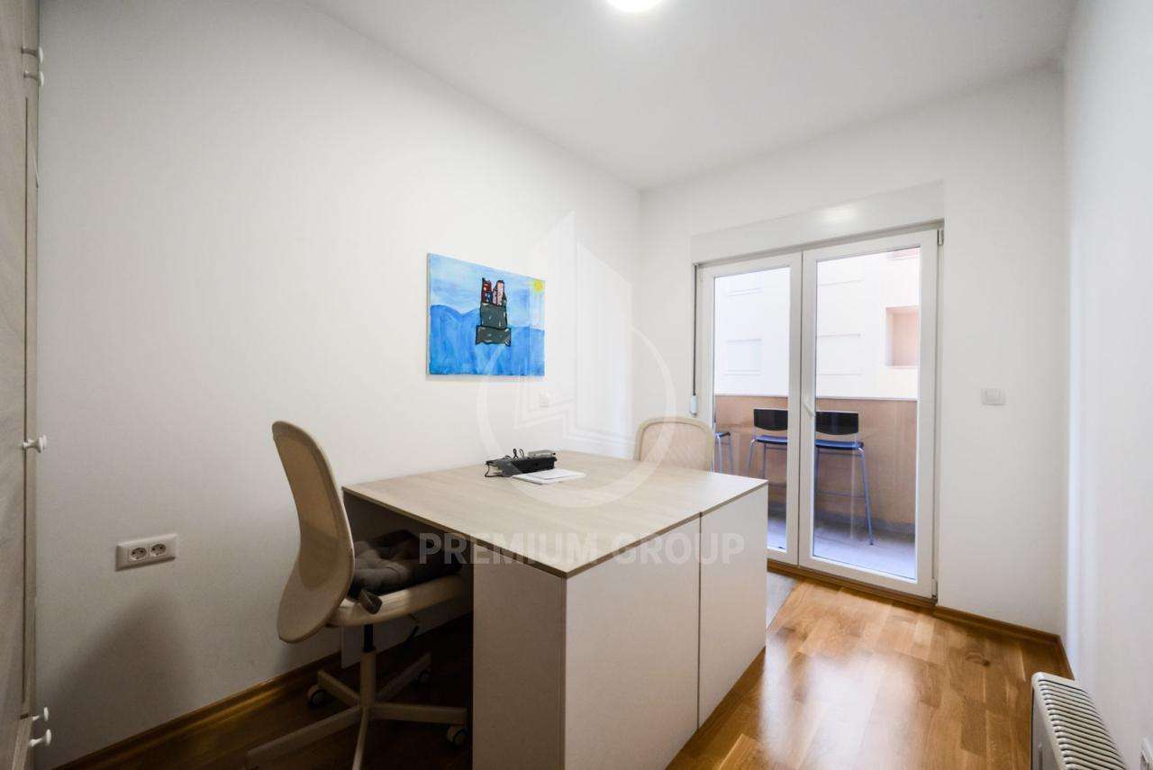 Iznajmljuje se veći dvosoban nenamješten stan 68m2 na Tuškom Putu, Bulevar Stanka Radonjeća. Stan s enalazi u novogradnji sa liftom i pozicioniran je na trećem spratu. Sastoji se od: ulaznog hodnika, dnevnog boravka, kuhinje, dvije spavaće sobe, kupatila i terase na koju je omogućen izlaz sa tri strane. Korišćen je kao poslovni prostor pa je tako pored stambene namjene moguće obavljati i različite kancelarijske ili salonske poslove. U prizemlju zgrade nalaze se brojni poslovni prostori. Stan se iznajmljuje na duži vremenski period uz obavezan depozit pri useljenju.