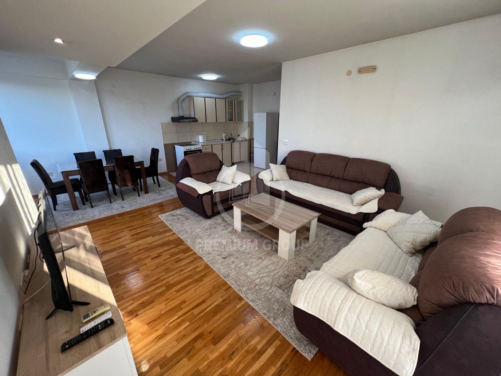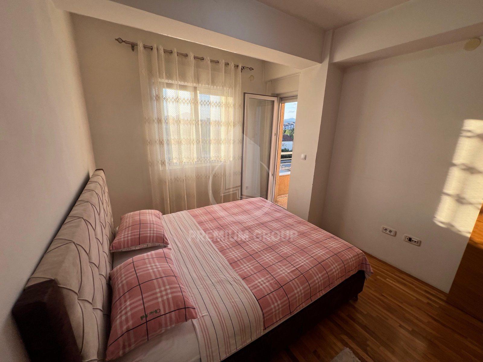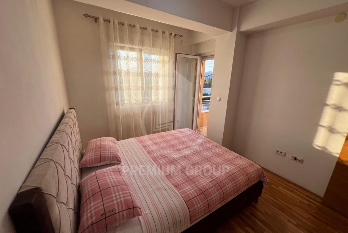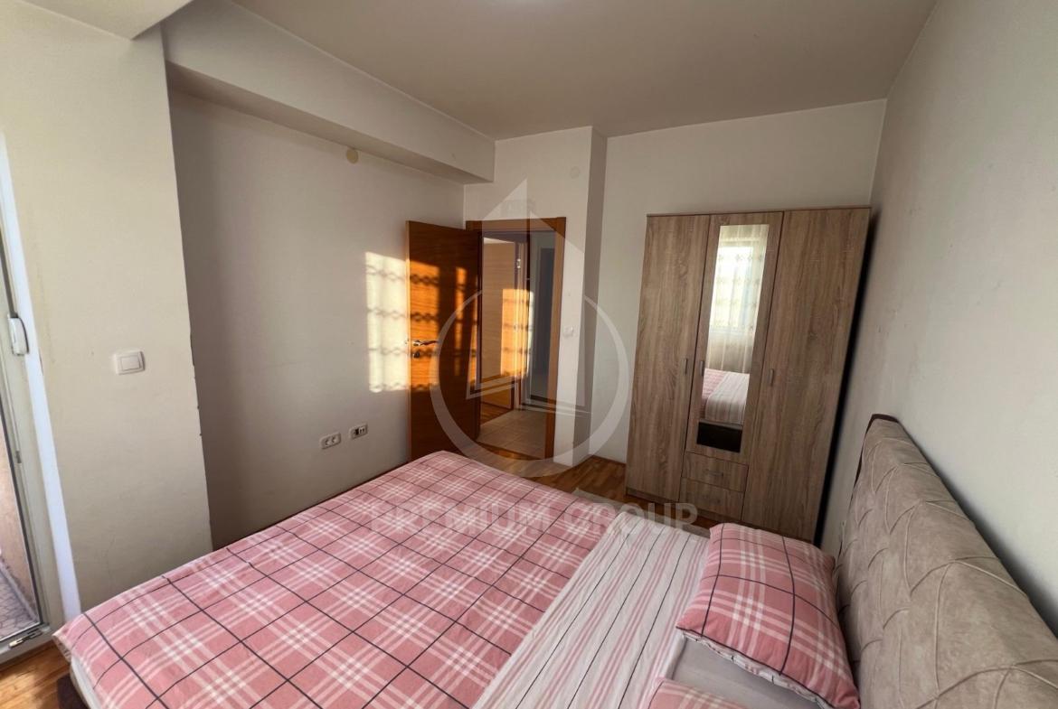 Iznajmljuje se veći dvosoban namješten stan 64m2 u stambenoj zgradi na Zabjelu. Na trećem je spratu, a zgrada posjeduje lift. Stan je prostran, sa velikim i prozračnim prostorijama. Sastoji se od: ulaznog hodnika dnevnog boravka, trpezarije, kuhinje, dvije spavaće sobe, kupatila, toaleta i velike terase. Na terasu postoji mogućnost izlaska iz dnevnog boravka i obje spavaće sobe. Potpuno je namješten posjeduje sve što je neophodno za život. U blizini su svi potrebni sadržaji za svakodnevan život. Pri useljenju daju se krija i depozit.