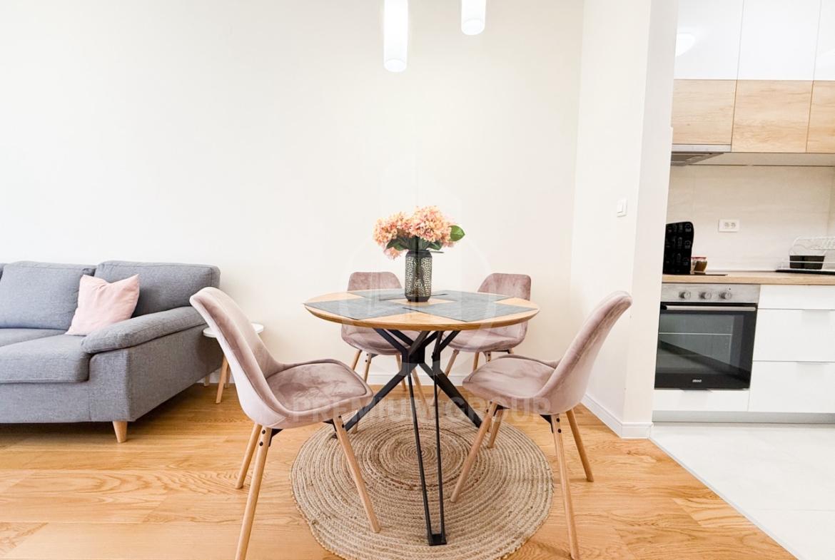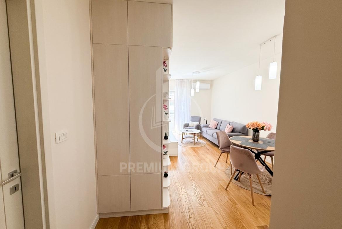 Iznajmljuje se nov i u potpunosti namješten jednosoban stan površine 40m2 u Central Pointu. Stan se nalazi u vrhunskoj novogradnji, na drugom je spratu, a zgrada posjeduje dva lifta. Struktura stana: ulazni hodnik, dnevni boravak, kuhinja, spavaća soba, kupatilo i terasa. Stan je jako lijepo opremljen novim stvarima, tehnika je takođe u potpunosti nova i funkcionalna. Posjeudje lijep raspored prostorija, dosta svjetlosti tokom čitavog dana, a terasa je okenuta prema dvorištu zgrade što garantuje mir. Lokacija je jedna od najtraženijih u gradu sa puno različitih sadržaja i praktična je za obavljanje svih životnih aktivnosti.