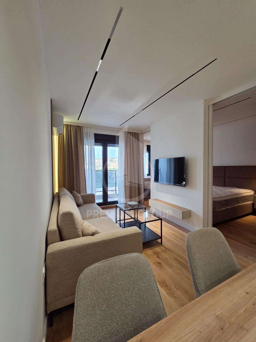 Iznajmljuje se jednosoban lux opremljen stan u novom kvartu Green Level 2, Baku ulica. Stan se nalazi na šestom spratu u luksuznoj i održavanoj stambenoj zgradi, sprat nije posljednji, a zgrada posjeduje lift. Sastoji se od: ulaznog hodnika, dnevnog boravka, kuhinje, spavaće sobe, kupatila i terase. Na tersu se izlazi iz dnevnog boravka i gleda prema dvorišnoj strani. Stvari su potpuno nove i nisu prethodno korišćene pa samim tim su sigurni komfor i udobnost. Stan se nalazi na odličnoj i sadržajnoj lokaciji, u blizini su prodavnice, apoteke, restorani i slično. Iznajmljuje se na duži vremenski period i postoji mogućnost zakupa garažnog mjesta.