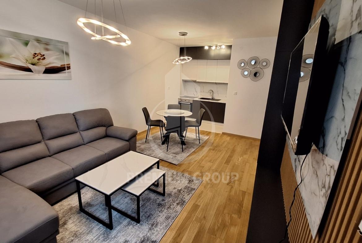 Iznajmljuje se jednosoban luksuzno opremljen stan ukupne stambene površine 48m2 na odličnoj lokaciji u City Kvartu. Stan se nalazi u novoj zgradi na drugom je spratu, a zgrada posjeduje lift. Struktura stana: ulazni hodnik, dnevni boravak sa kuhinjom u nastavku, spavaća soba, kupatilo, terasa. Stan je lijepo opremljen, prethodno nije useljavan i cjelokipan namještaj je nov, posjeduje ugradne ormare i ugradne kuhinjske elemente. Na odličnoj je lokaciji koja pruža sve što je potrebno za obavljanje poslovnih i privatnih aktivnosti. Iznajmljuje se na duži vremenski period, a pri useljenju se daju kirija i depozit