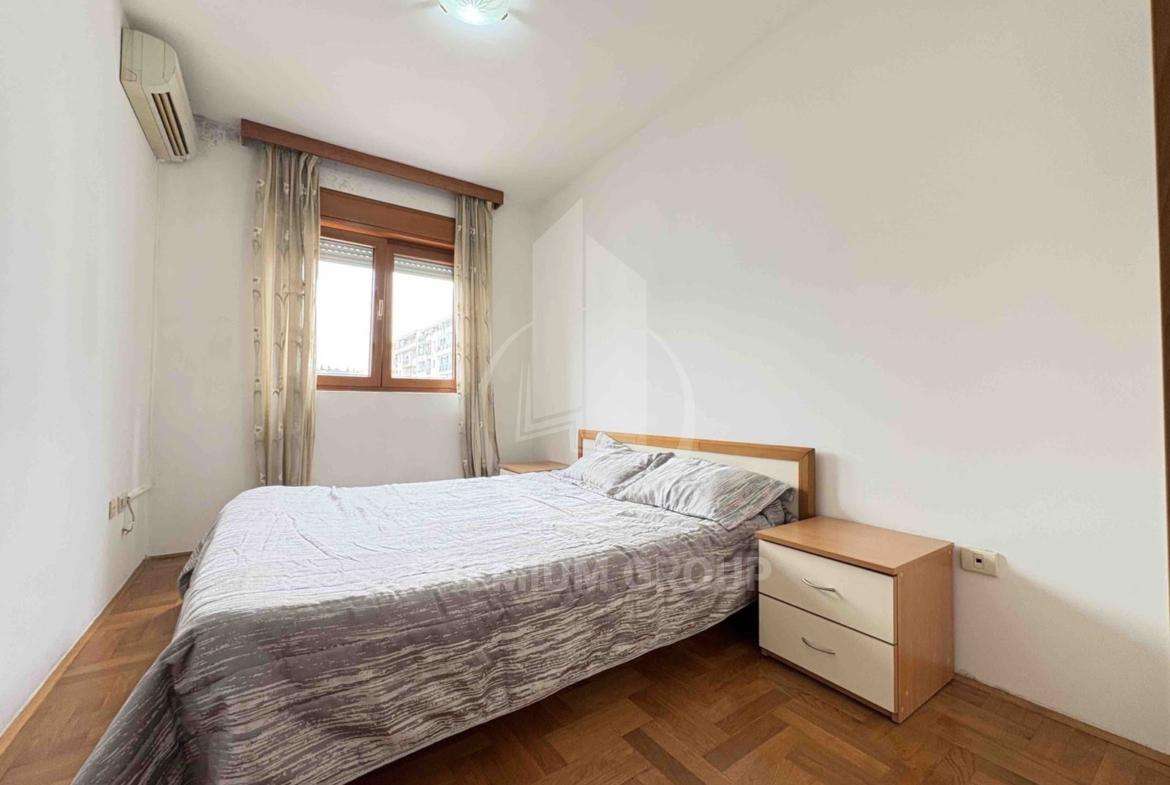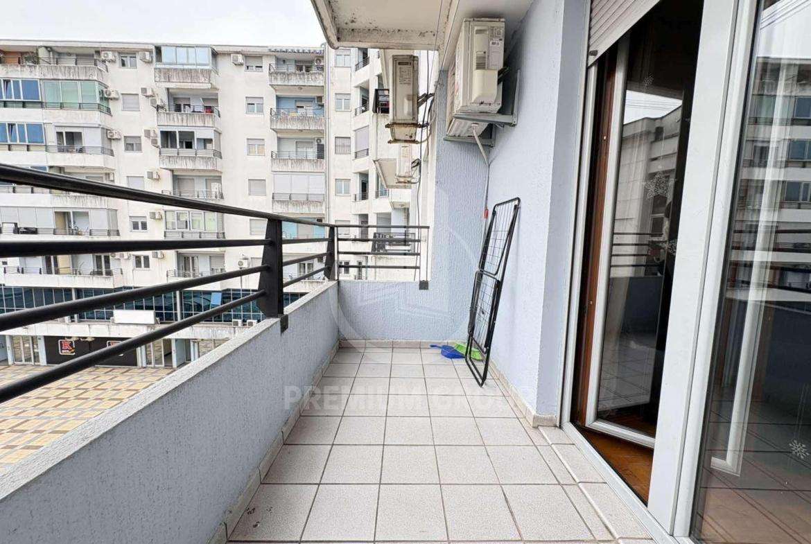 Iznajmljuje se veći jednosoban stan površine 59m2 koji se nalazi u naselju Preko Morače. Stan je pozicioniran u stambenoj zgradi na drugom je spratu a zgrada je visokog kvaliteta i posjeduje lift. Sastoji se od: ulaznog hodinka, dnevnog boravka, kuhinje, spavaće sobe, kupatila i terase. Terasa gleda prema Sabornom hramu i dvorišnoj strani zgrade, a na nju se izlazi iz dnevnog boravka. U cijenu zakupa uključeno je parking mjesto u okviru ove zgrade. Lokacija stana je izuzetni prometna, sadržajna, mirna i funkcionalna za život. U neposrednoj blizini nalazi se sve neophodno za život uz mnogo objekata poslovne namjene. Predviđen je za dugoročan najam uz obavezan depozit pri useljenju.