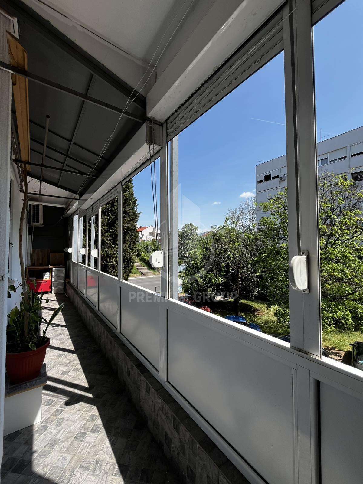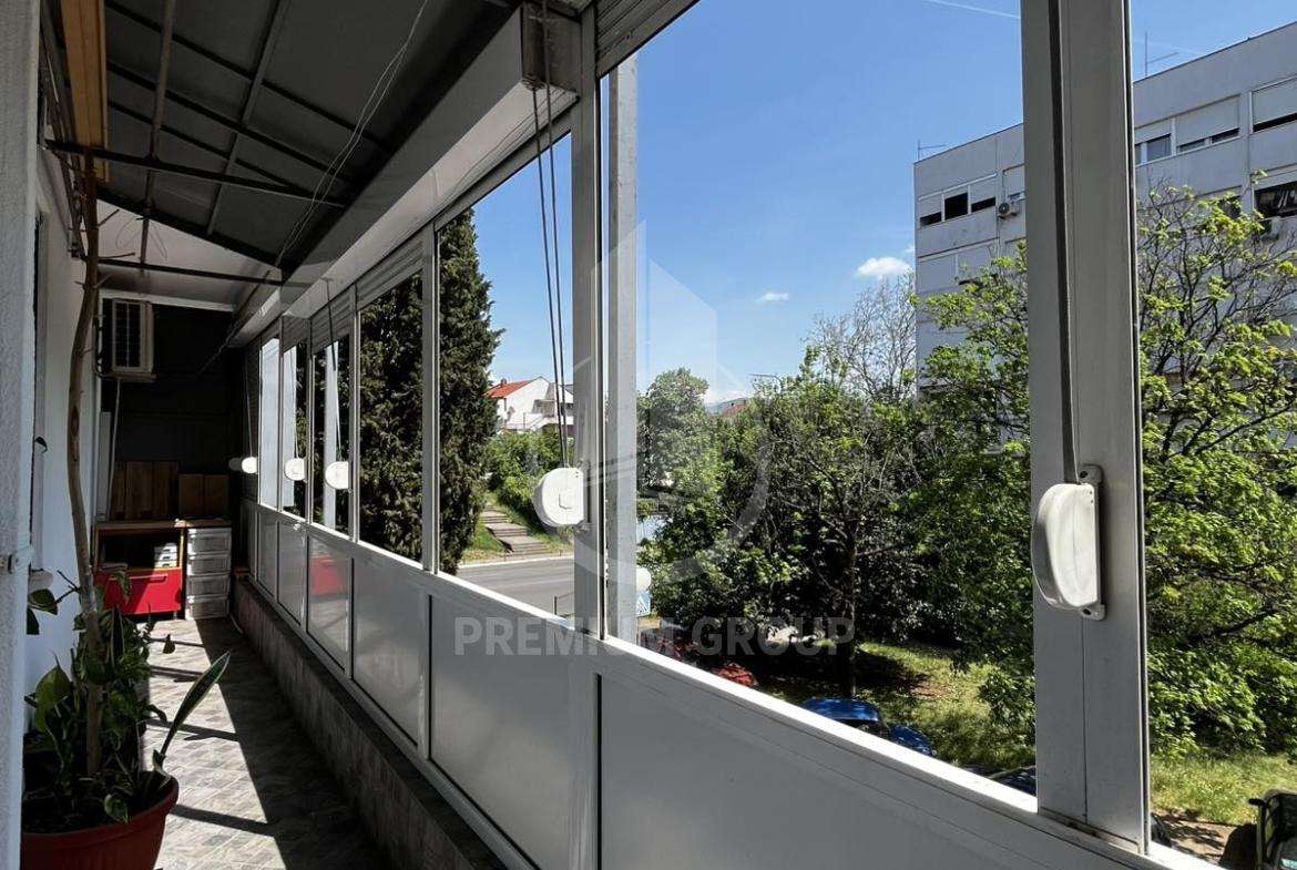 Iznajmljuje se lux opremljen jednosoban stan 50m2 kod redakcije Dana u naselju Preko Morače. Stan se nalazi u stambenoj zgradi, na prvom je spratu i zgrada posjeduje lift. Sastoji se od: ulaznog hodnika, dnevnog boravka, kuhinje, spavaće sobe, kupatila i terase. Stan je izuzetno komforan, lijepo opremljen i posjeduje praktičan raspored prostorija. Okrenut je prema dvorišnoj strani zgrade, a orijentisan je istočno. Terasa je izuzetno lijepa i prijatna za boravak jer se prostire čitavom dužinom stana i posjeduje ukupno 10m2. Ispred zgrade je veliki javni parking namijenjen stanarima. Lokacija je praktična i sadržajna pogodna je za studentte zbog blizine fakulteta. Iznajmljuje se na duži period uz obavezan depozit.