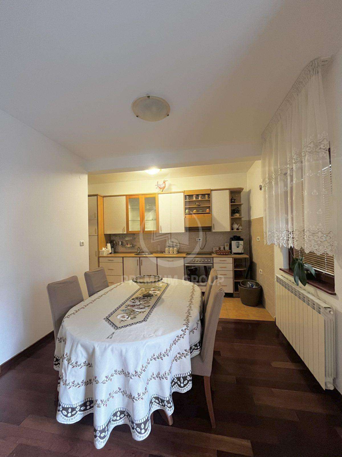 Iznajmljuje se lux opremljen trosoban stan 105m2 u stambenoj zgradi naselje Gorica C. Stan se nalazi u stambenoj zgradi koja posjeduje garažu sa jednim predviđenim mjestom za ovaj stan, a stan se nalazi na prvom spratu. Struktura stana: ulazni hodnik, prostrani dnevni boravak, kuhinja, trpezarija, predsoblje, tri spavaće sobe, kupatilo i toalet i tri terase. Stan je jako komforan i prostran, raspored prostorija je idealan, sve prostorije u stanu su klimatizovane jer je ugrađen multisplit sistem grijanja i hlađenja. Namještaj je kvalitetan, očuvan i u potpunosti funkcionalan. U blizini je strogi centar grada, ovo naselje je mirno, sa razvijenom infrastrukturom, posjeduje sve neophodne sadržaje za svakodnevan život.