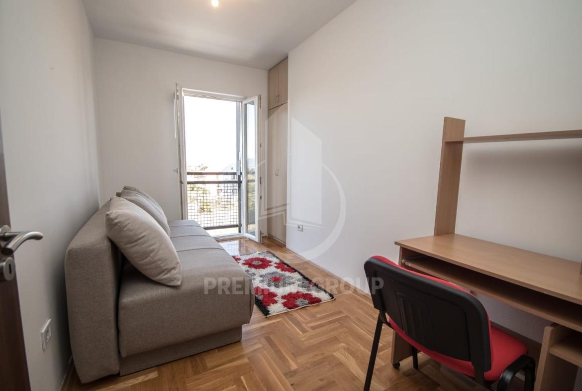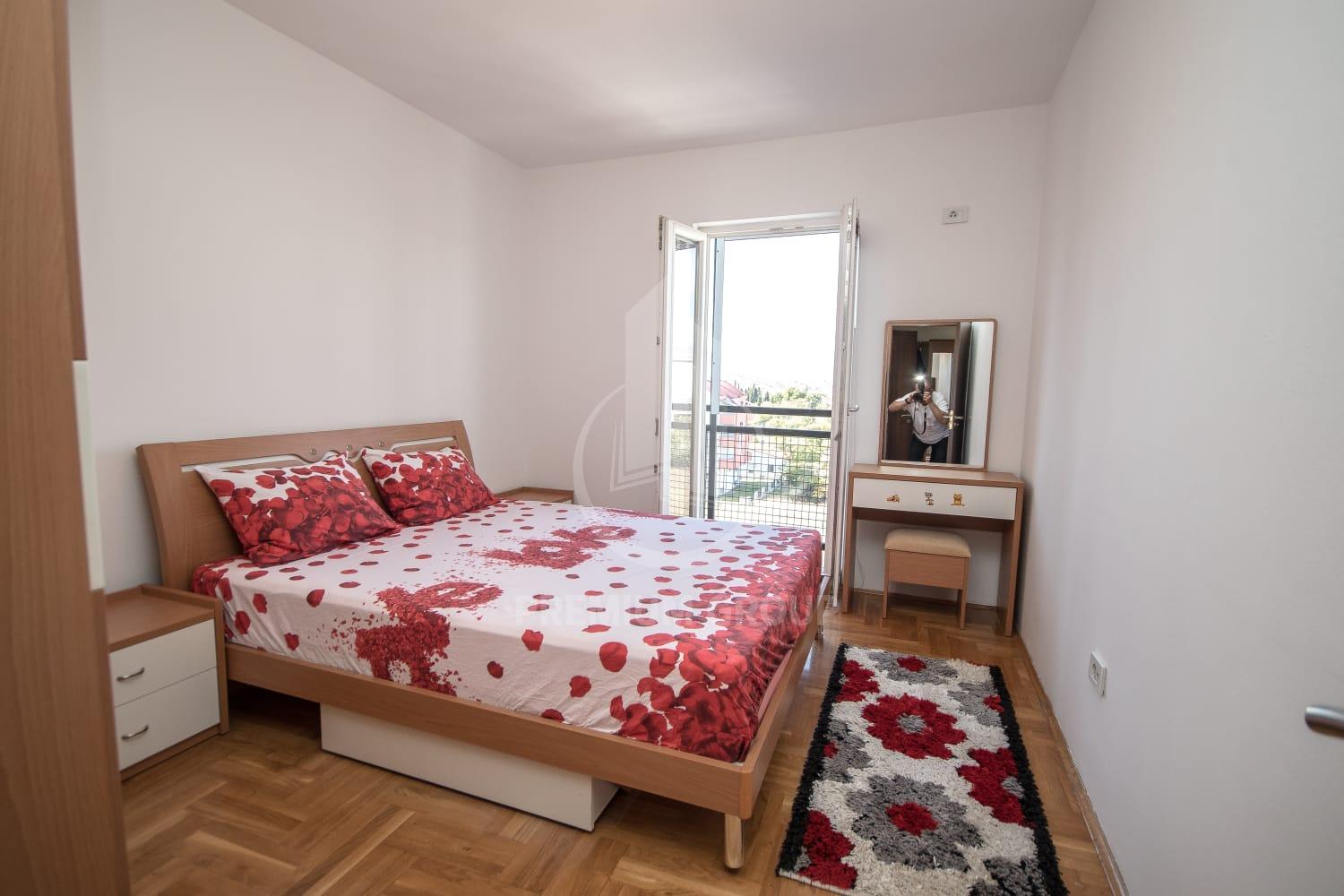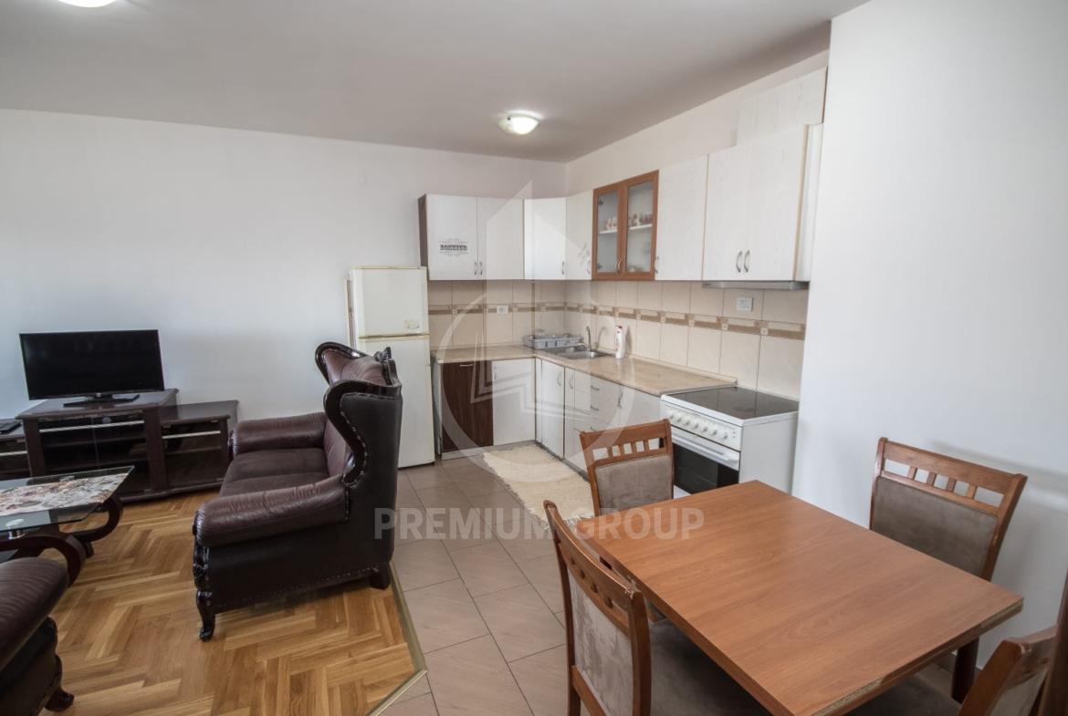 Iznajmljuje se dvosoban stan 57m2 odmah iza tržnog centra Big Fashion. Stan se nalazi u novoj i kvalitetnoj zgradi, pozicioniran je na četvrtom spratu od ukupno pet, a zgrada posjeduje lift. Stan se sastoji od: ulaznog hodnika, dnevnog boravka, kuhinje, trpezarije, dvije spavaće sobe, kupatila i prostrane terase. Na terasu se izlazi iz dnevnog boravka, kompletno je zastakljena, a obje sobe posjeduju francuski balkon. Stan je lijepo i funkcionalno opremljen, cjelokupan namještaj je jako kvalitetan i očuvan. Nalazi se na lijepoj i mirnoj lokaciji, u neposrednoj je blizini tržnih i poslovnih centara, KCCg-a kao i UCG-a.