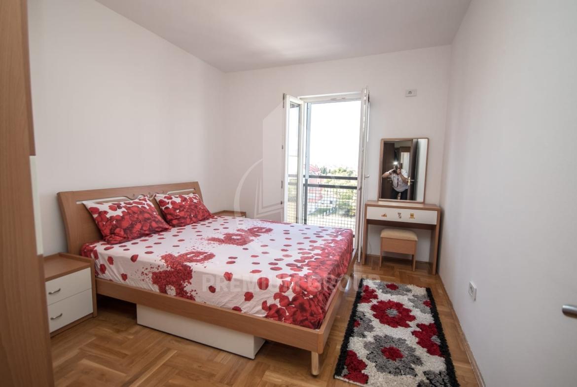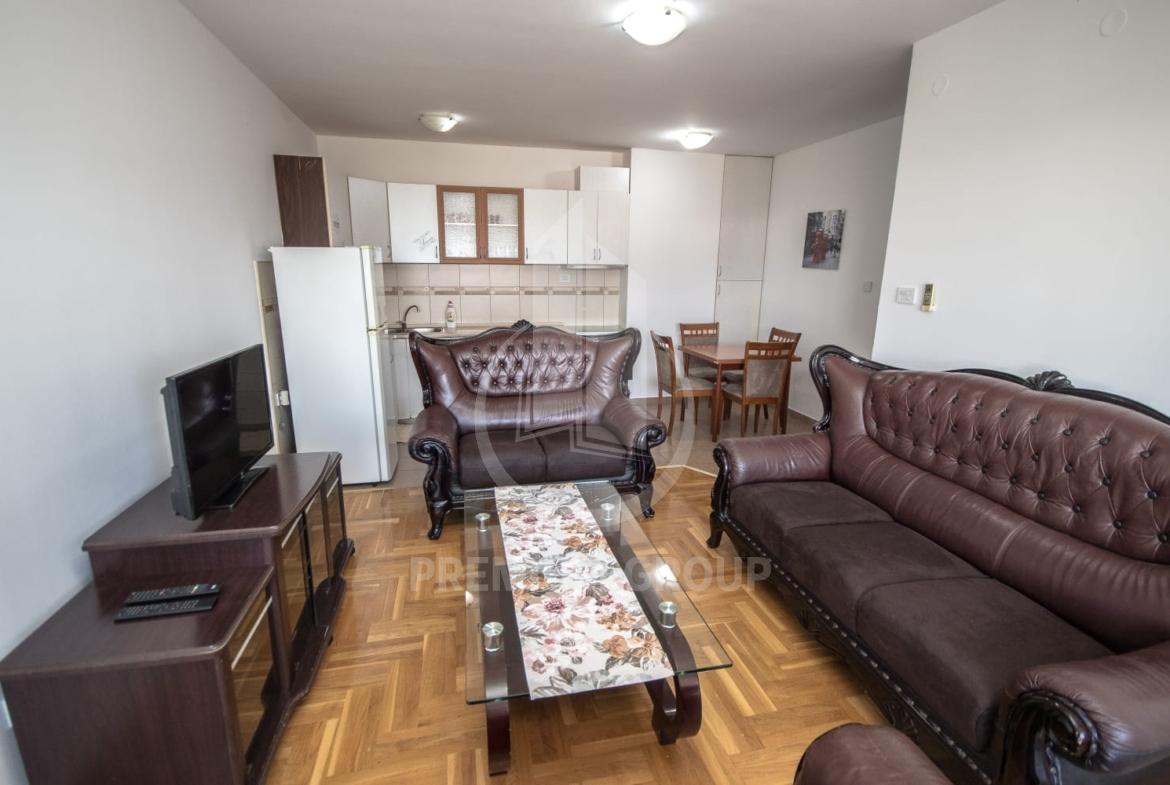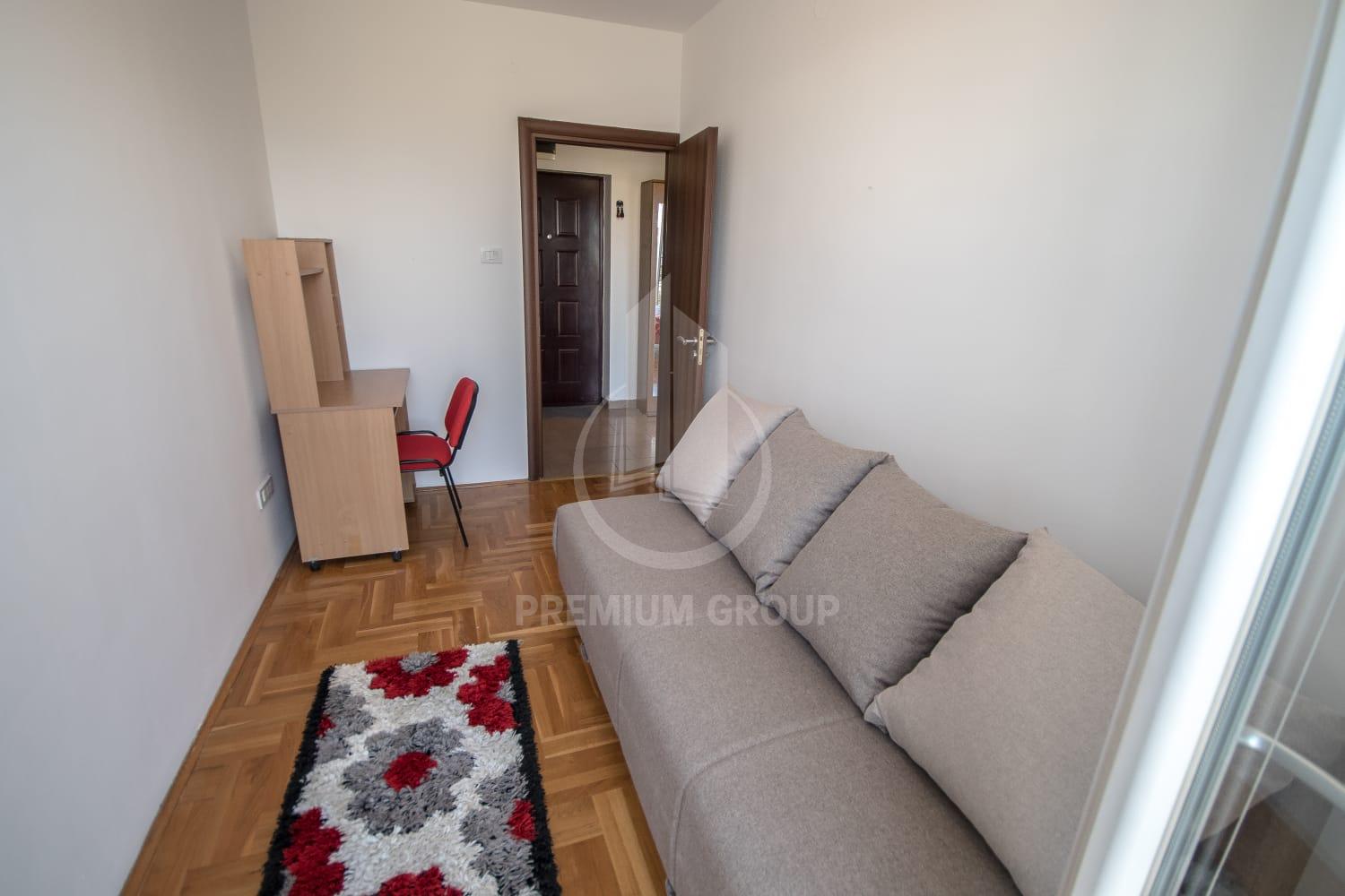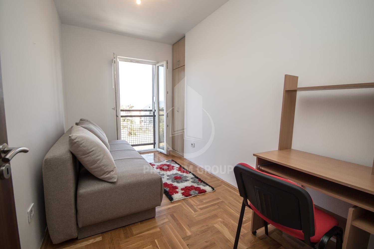 Iznajmljuje se dvosoban stan 57m2 odmah iza tržnog centra Big Fashion. Stan se nalazi u novoj i kvalitetnoj zgradi, pozicioniran je na četvrtom spratu od ukupno pet, a zgrada posjeduje lift. Stan se sastoji od: ulaznog hodnika, dnevnog boravka, kuhinje, trpezarije, dvije spavaće sobe, kupatila i prostrane terase. Na terasu se izlazi iz dnevnog boravka, kompletno je zastakljena, a obje sobe posjeduju francuski balkon. Stan je lijepo i funkcionalno opremljen, cjelokupan namještaj je jako kvalitetan i očuvan. Nalazi se na lijepoj i mirnoj lokaciji, u neposrednoj je blizini tržnih i poslovnih centara, KCCg-a kao i UCG-a.