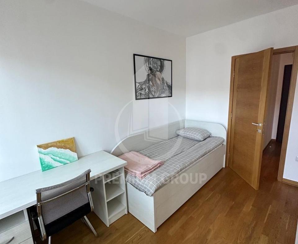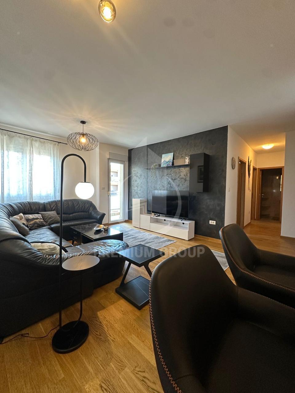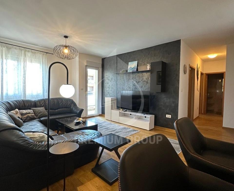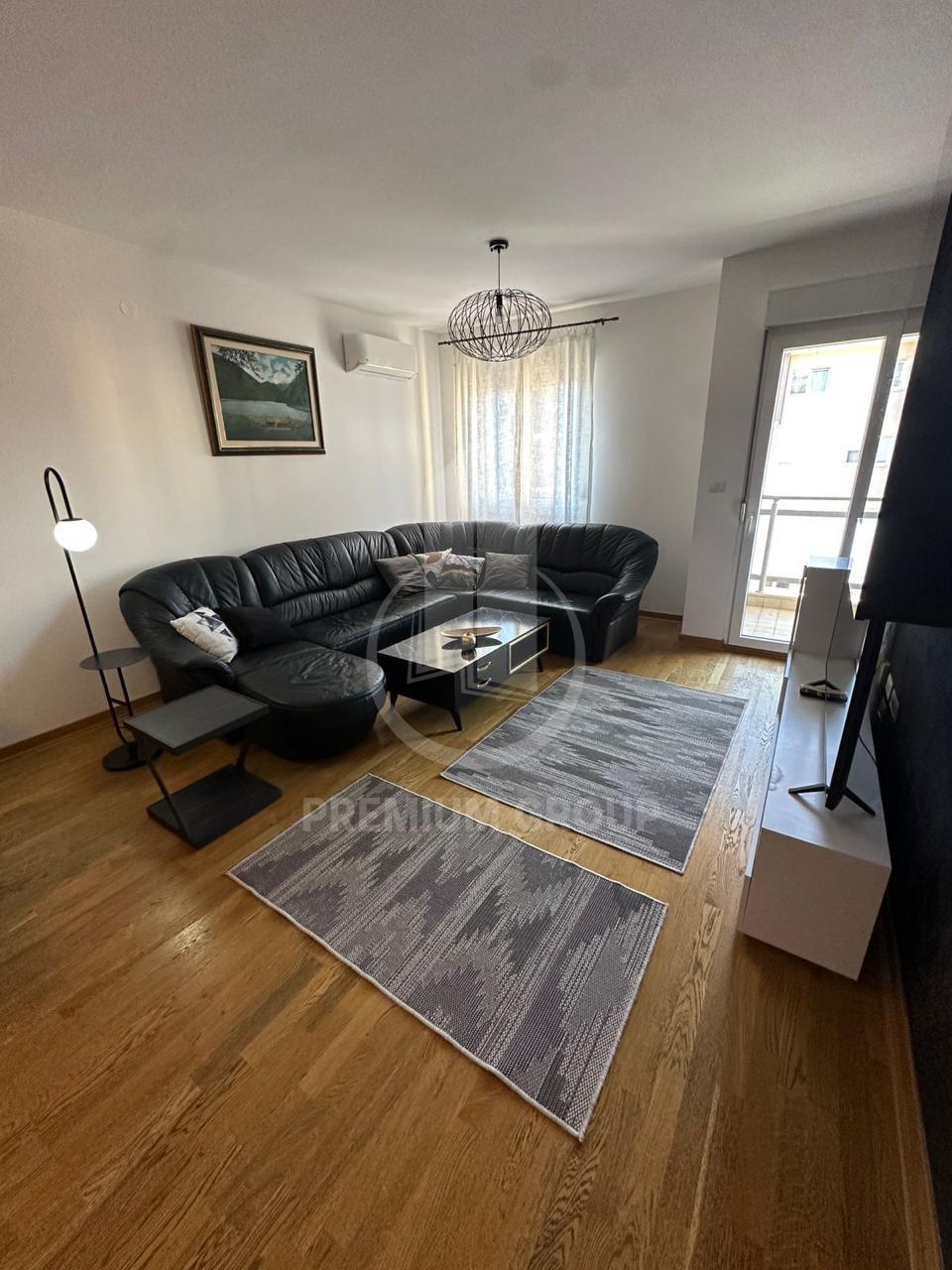 Iznajmljuje se dvosoban lux opremljen stan u City Kvartu, stambene površine 70m2. Stan je na šestom spratu, zgrada posjeduje lift i redovno je održavana. Struktura stana: ulazni hodnik, dnevni boravak, kuhinja, trpezarija, dvije spavaće sobe, kupatilo i toalet, terasa. Postoji mogućnost izlaska na terasu iz više prostorija. Stan posjeduje velike prostorije, sa dosta svjetlosti, stvari su izuzetno kvalitetne i stan je opremljen cjelokupnom aparturom i tehnikom. Orjentisan je jugozapadno, a ispre dzgrade je i javni parking. Nalazi se na odličnoj lokaciji, u blizini svih potrebnih sadržaja i iznajmljuje se na duži vremenski period