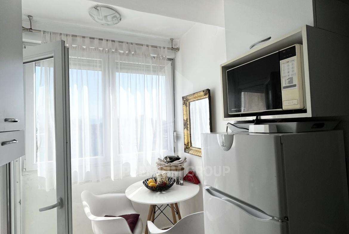 Prodaje se potpuno namještena garsonjera 35m2 u Jerevanskoj ulici na Zabjelu. Stan se nalazi na sedmom spratu koji je ujedno i posljednji sprat, a zgrada posjeduje lift. Garsonjera se prodaje kao namještena izvršena su određena ulaganja pa su kuhinja i kupatilo renovirani. Sastoji se od: hodnika,dnevnog boravka, odvojene kuhinje, kupatila i terase. Terasa je jako prostrana i praktična, a cjeelokupan stan je izuzetni funkcionalan za život, a orijentisan je istočno. Stan se nalazi na prometnoj lokaciji uz sami bulevar što doprinosi povezanosti sa ostalim djelovima grada. U blizini je OŠ, vrtić, brojni marketi, apoteke, kafići i restorani. List nepokretnosti je čist i nema tereta ni ograničenja.