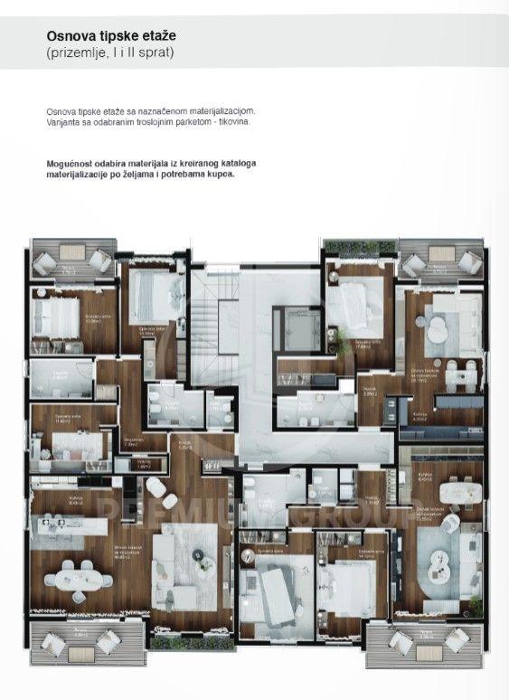 Prodaje se stan u izgradnji koji se nalazi u luksuznom kompleksu Verde Village. Stan je smješten u vili sa 9 stanova (biće 6) rađenih po svim standardima vrhunske gradnje. Stanovi se nalaze u prirodnom okruženju, ima pogled prema Skadarskom jezeru, a orijentacija mu je jugoistok. U suterenu ove vile nalazi se parking mjesto predviđeno za ovu stambenu jedinicu. Posjeduje i zajedničko dvorište koje se prostire na 1800m2 i njega koriste stanari ovog kompleksa. Rok za završetak radova je 12 mjeseci.
