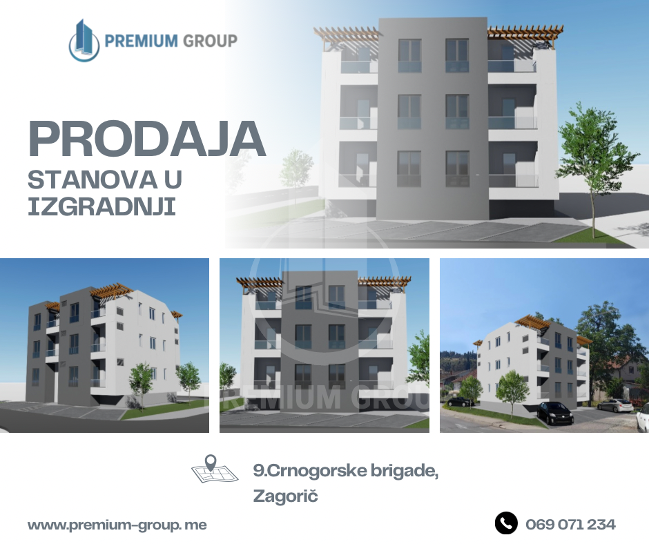 U srcu razvijajućeg Zagoriča, u ulici Devete Crnogorske  brigade smješteni su moderni stanovi u izgradnji koji će zadovoljiti sve vaše potrebe. Sa završetkom radova planiranim za august 2024. godine, ovi stanovi obećavaju savremen način života u mirnom okruženju.